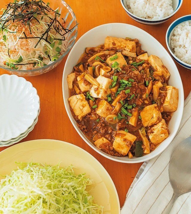 「麻婆味は家族が大好きだし、ご飯が進むのでわが家では毎週登場します」とワンパターンが家族に好評。プラスする具はもやし、エリンギ、大根、白菜など白っぽくて味にくせがない物が○。具を増やせばボリュームアップして、家族5人がおなかいっぱい食べられます。