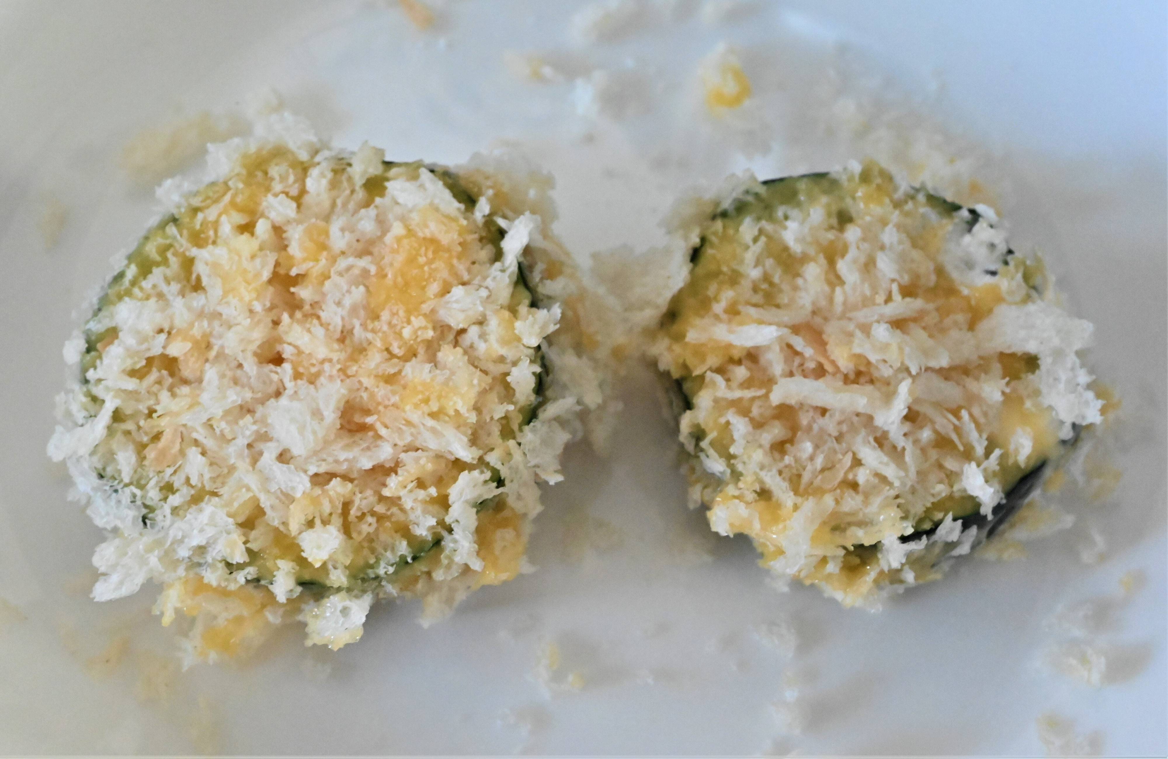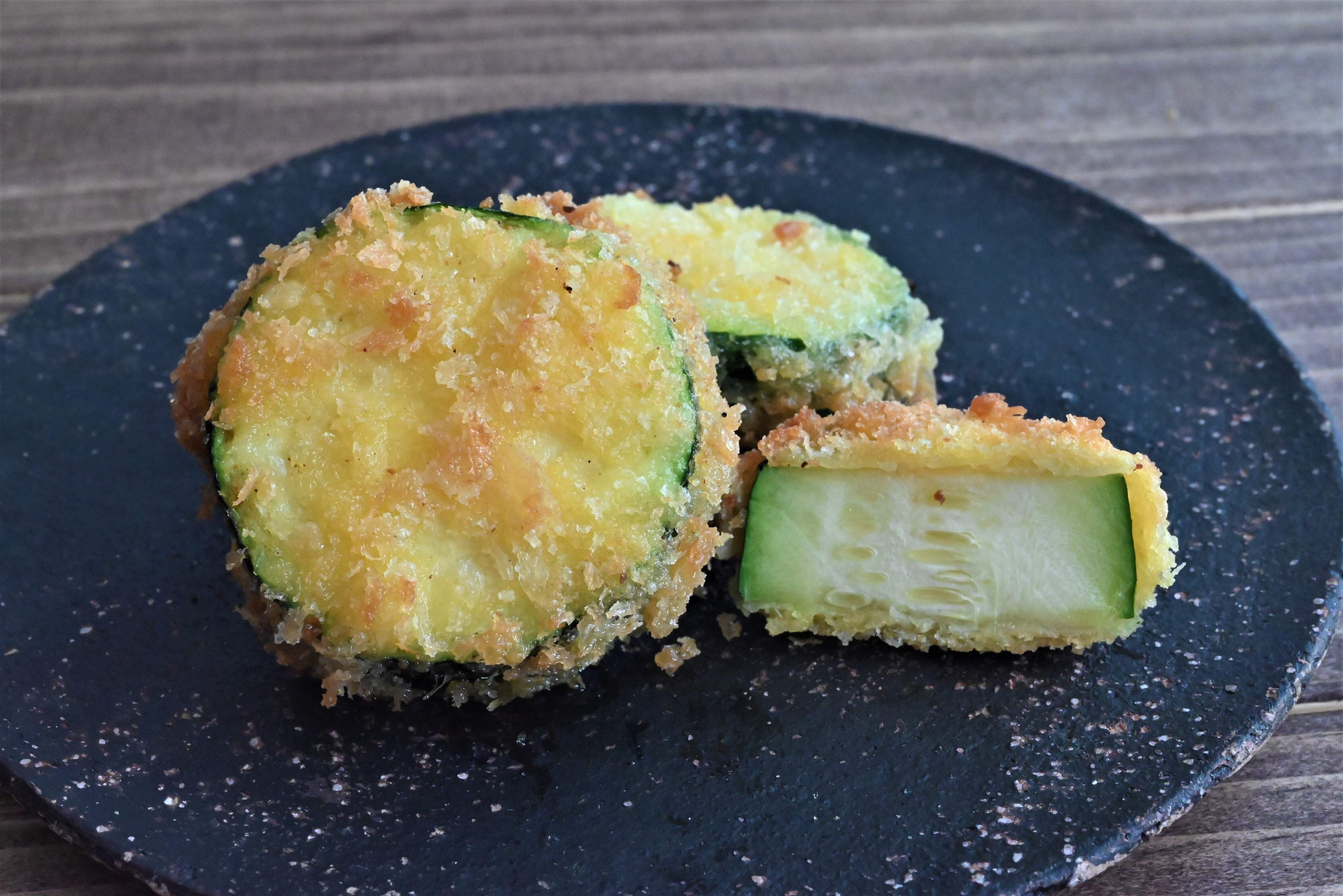 衣に閉じ込められたズッキーニがホクホクに仕上がりますよ♪