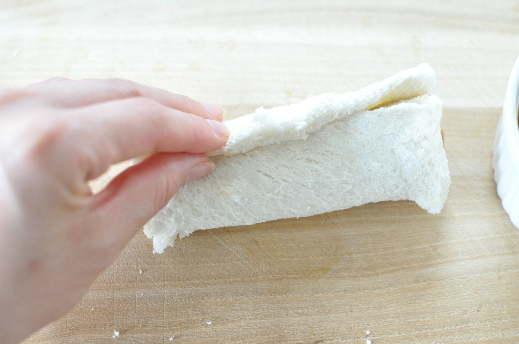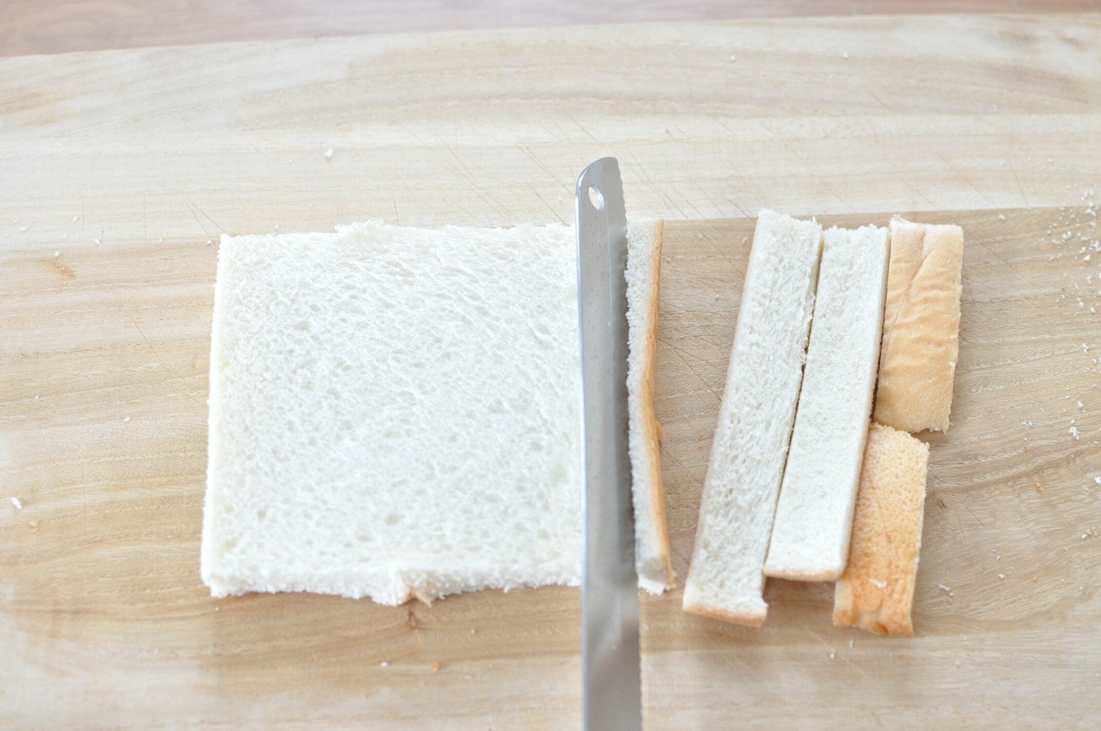 パンの耳を切りおとします。