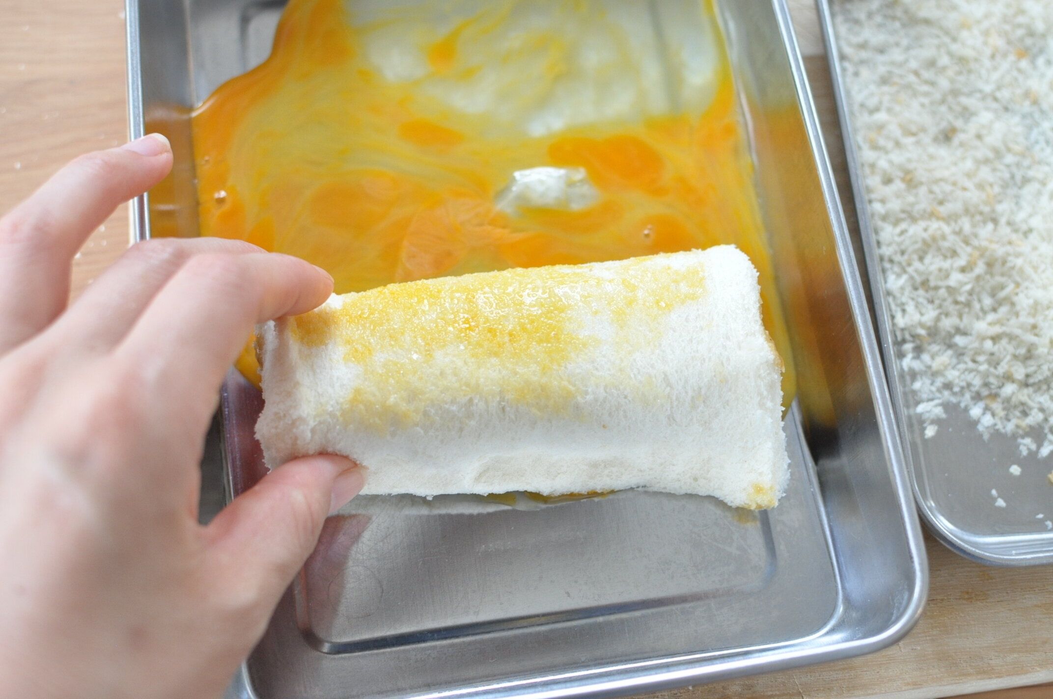 溶き卵をまぶします。
