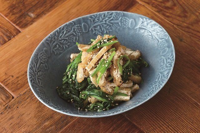 パリッと焼いた油揚げと旬の青菜が気のきいた一品に。
