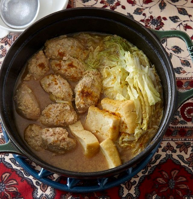 鶏だんごと厚揚げのみそカレー煮込み