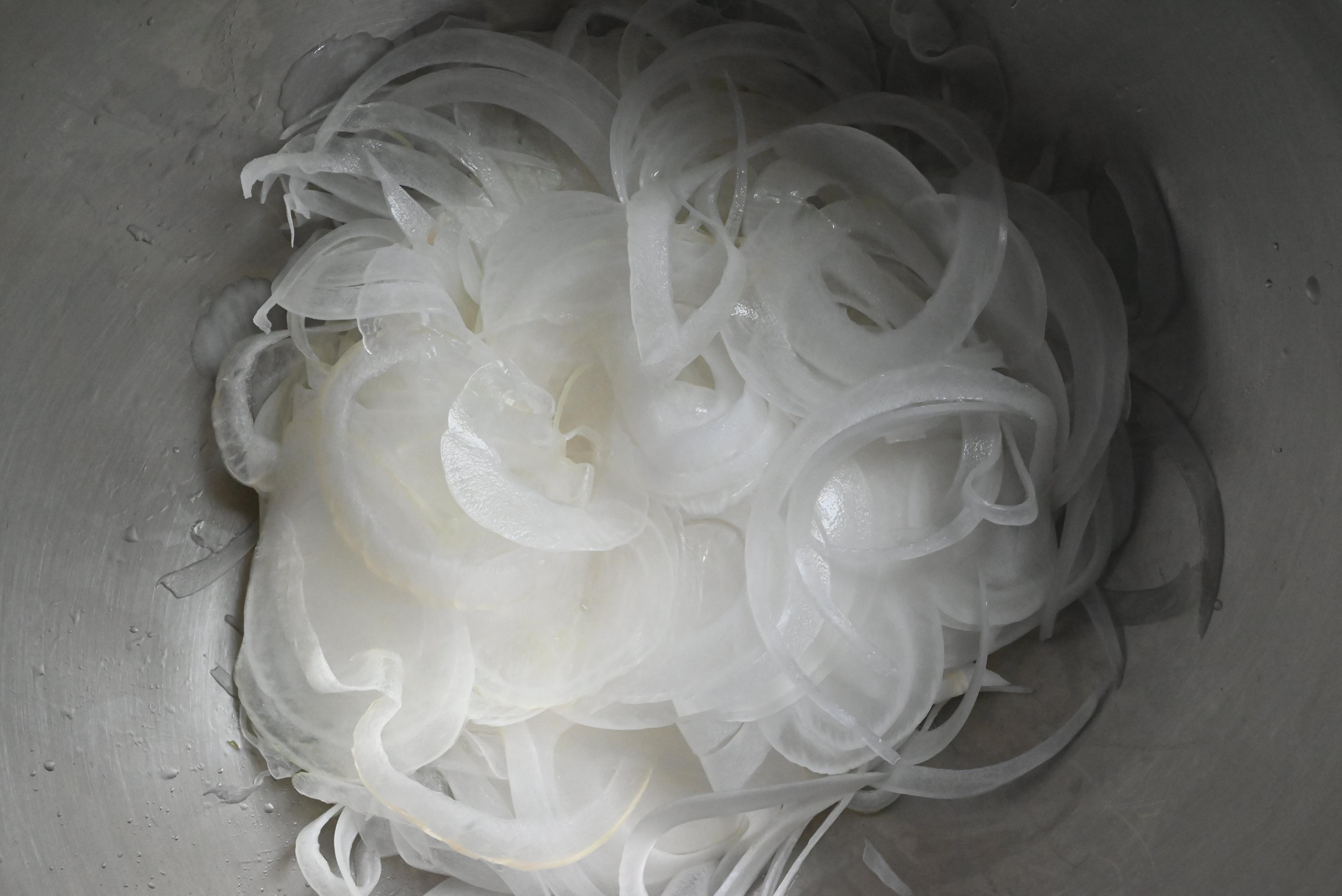 スライスした新玉ねぎに調味料を混ぜるだけで完成!