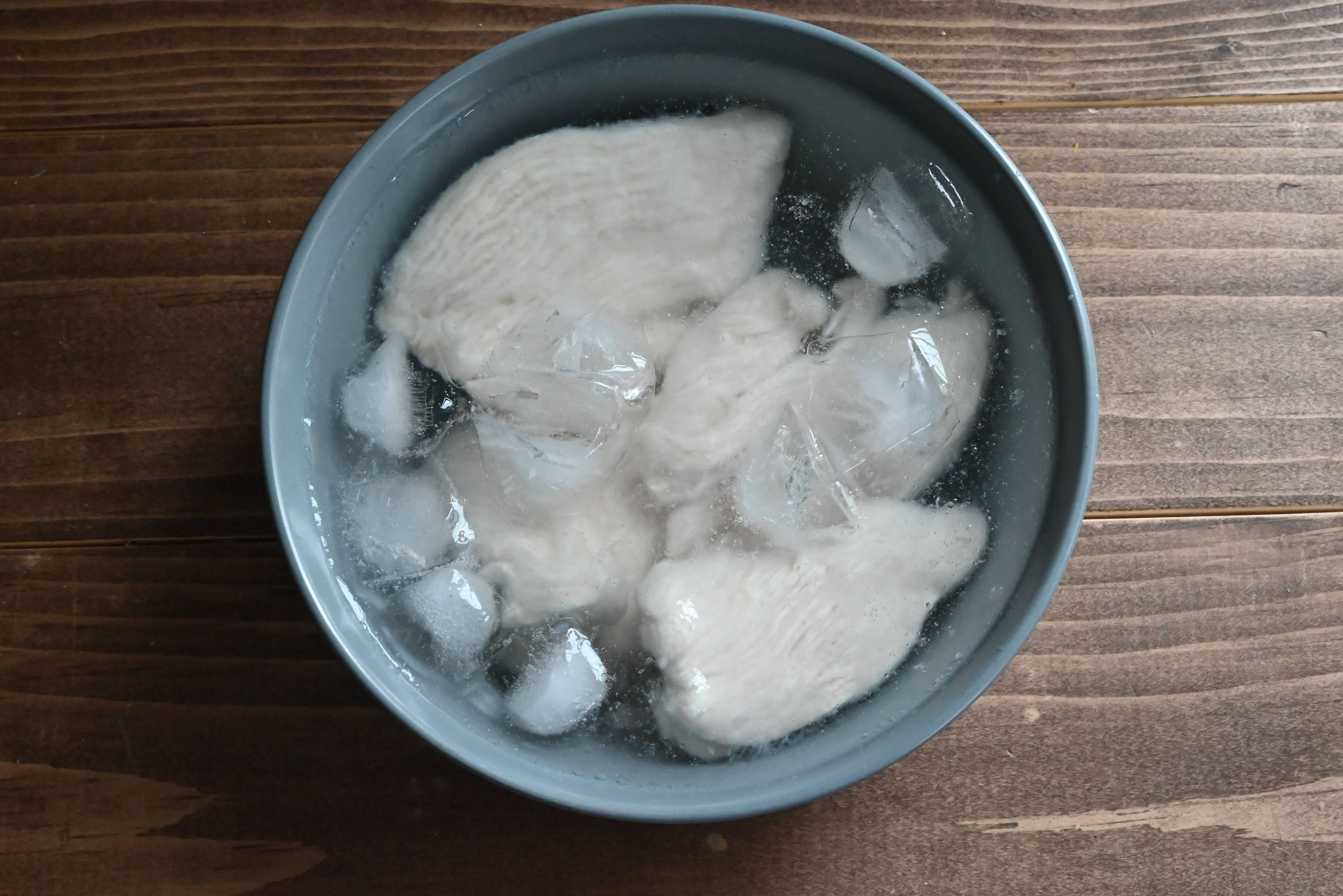 水気をふき、片栗粉をまぶして沸騰した湯で、4分加熱して氷水に取りましょう。