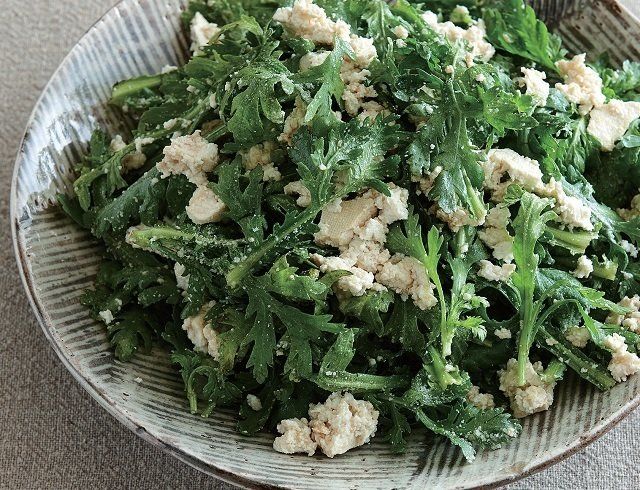 春菊とくずし豆腐のチーズあえ