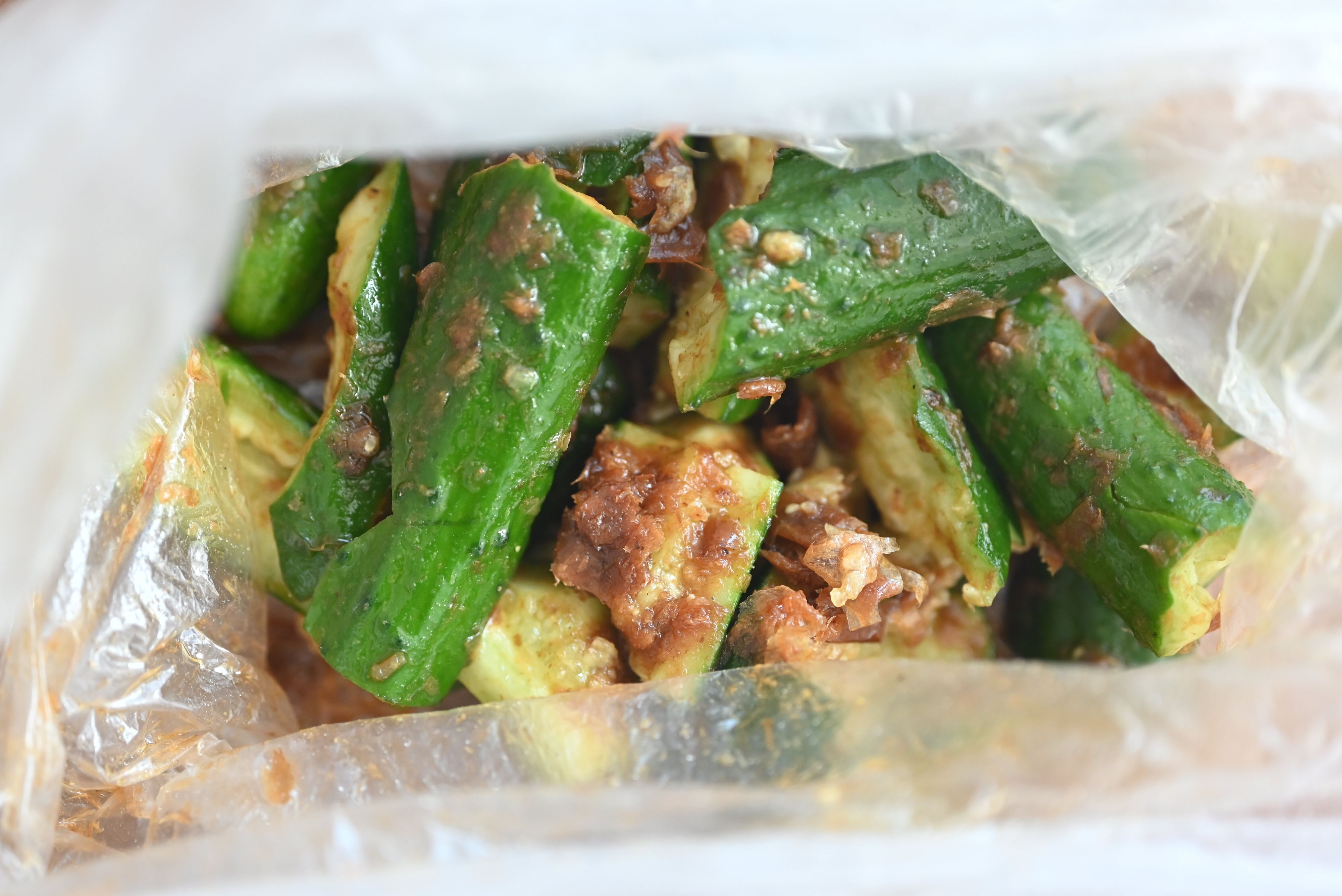 (3)きゅうりを食品用ポリ袋に入れて