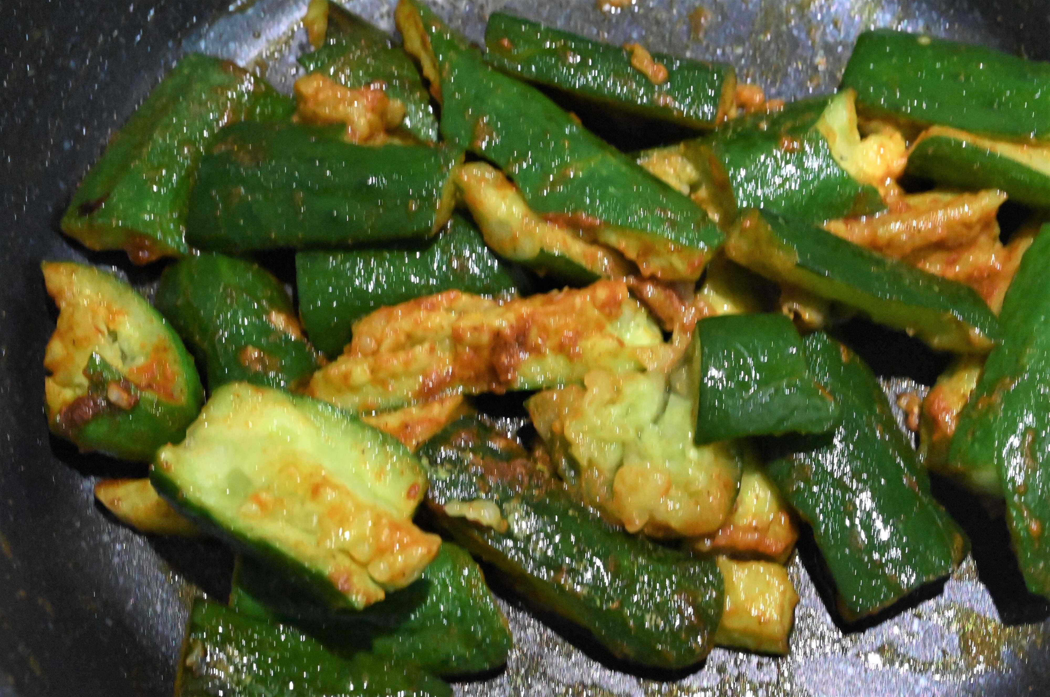 きゅうりを1分炒める。