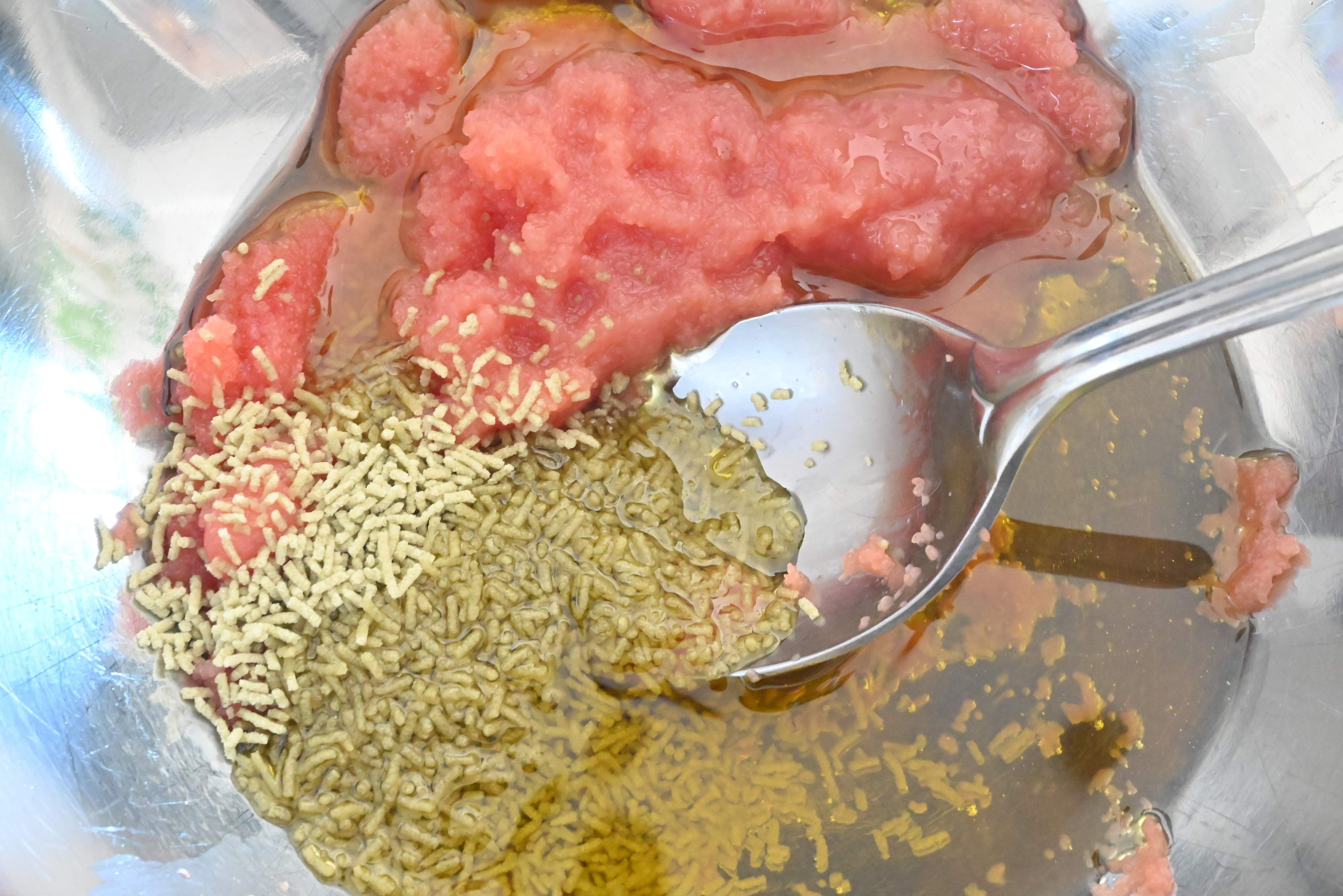 昆布茶、オリーブオイルとよく混ぜ合わせる。