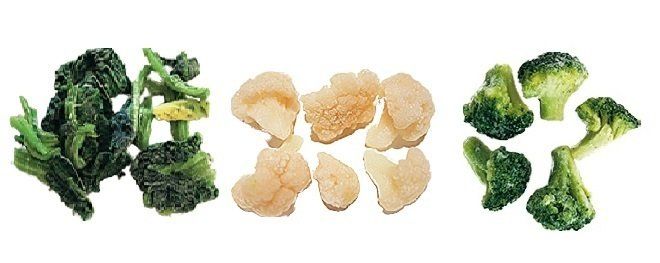 (左から)冷凍ほうれん草、冷凍カリフラワー、冷凍ブロッコリー
