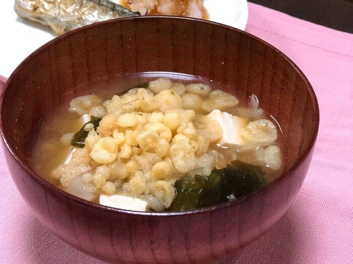 味噌汁に天かすをちょいたしする