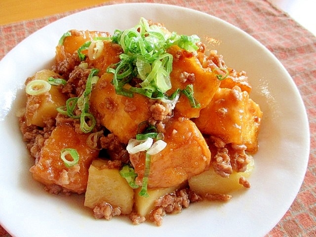 厚揚げとじゃがいものとろとろそぼろ生姜煮♪