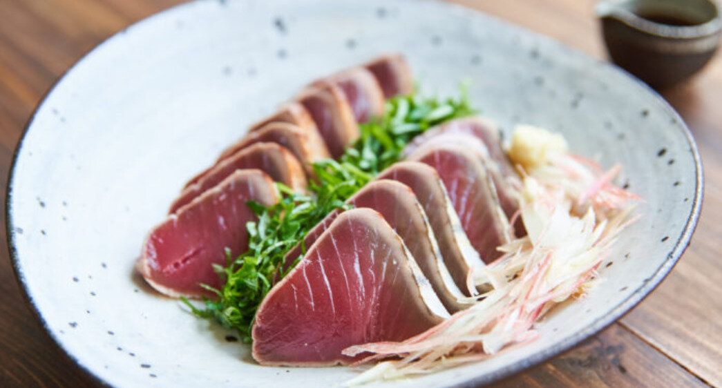 刺身用のかつおを使用して、フライパンでつくるかつおのたたきのレシピ。相性ばつぐんの薬味や、ポン酢をかけていただきます。お酒との相性もよく、おつまみにも!お好みでニンニクを添えるのもおすすめですよ。