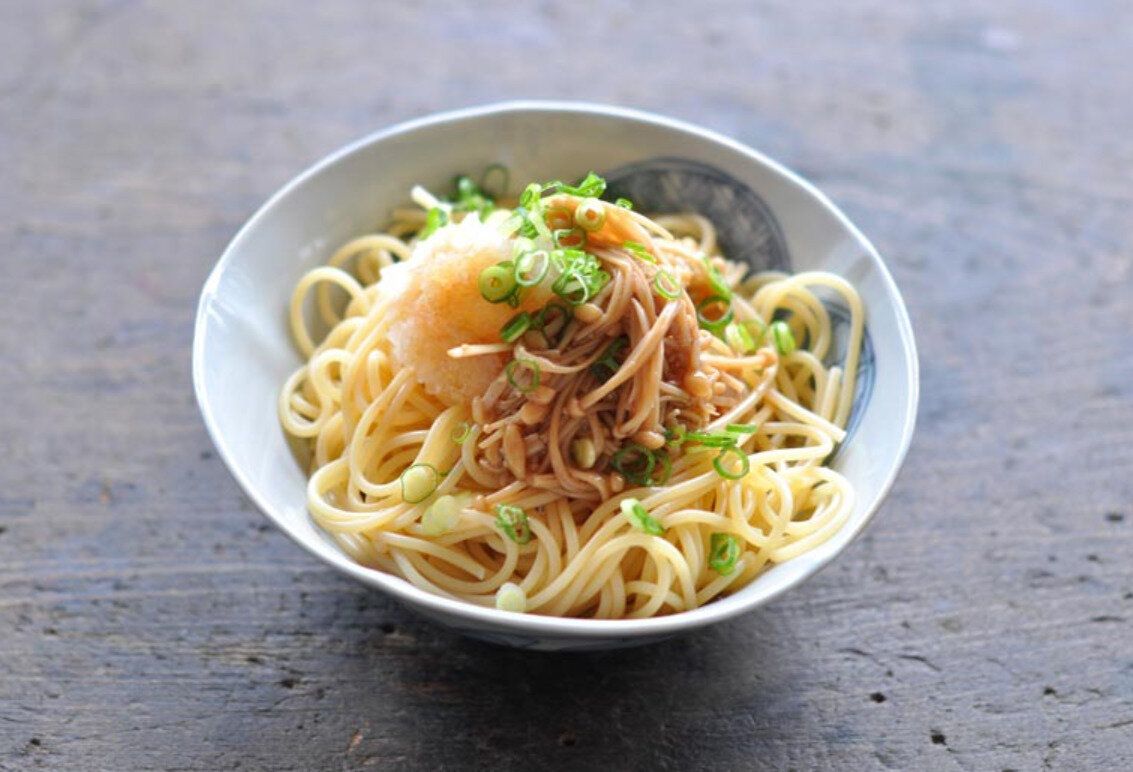 なめたけと大根おろし、市販のポン酢しょうゆでさっぱり食べられるパスタのレシピです。さっぱりとした組み合わせですが、オリーブオイルをプラスすることで”和パスタ”な仕上がりに。なめたけは手作りするのもおすすめです。