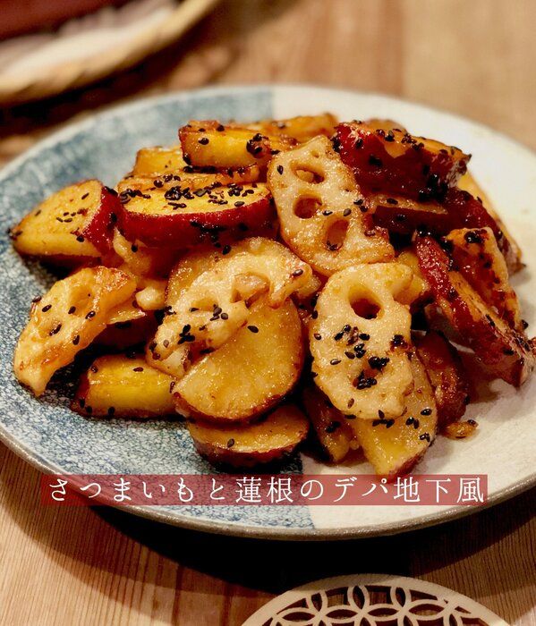 【簡単美味しい】さつまいもと蓮根のデパ地下風おかず