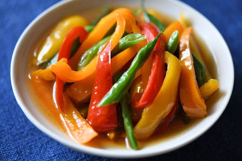 パプリカといんげんの揚げびたし