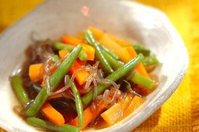 いんげんと人参のだしがらオイル和え