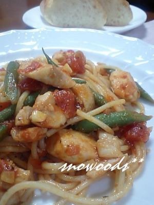 • チキンといんげんのトマトパスタ