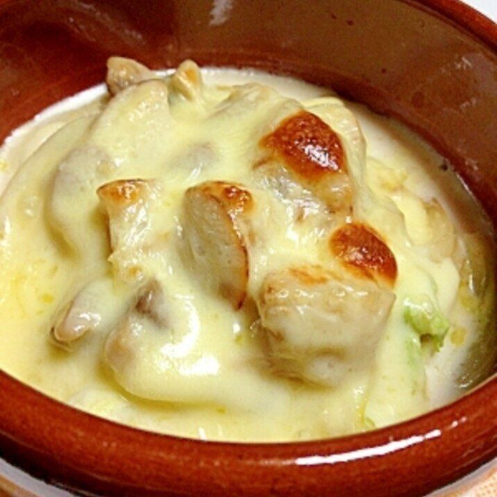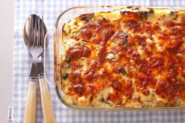 牛乳でつくるので、あっさりした風味に仕上がる白菜とホタテのミルクグラタン。ホタテは、にんにくやオリーブオイルで味つけをしてからオーブンへ。さらっとした口当たりが優しい一皿です。