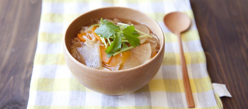 シンプルな味付けなのに、旨味たっぷりでからだも心もほっと温まるやさしい味わいのスープです。具材には、ホタテ缶を使い、汁ごとスープに加えるだけなので、誰でも簡単に本格的な味わいのスープを手軽につくれます。