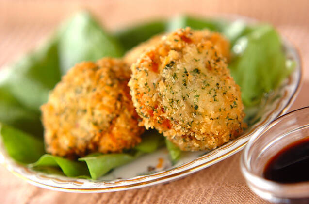 ジャガイモとホタテのおやき風は、ホタテ缶を使ってつくる一品。もちもち食感のジャガイモに甘みたっぷりのホタテが絶妙にマッチ!青のりの香りがまた食欲をそそります。お子さんのおやつにしても◎。