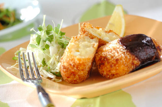 ゴロゴロとホタテが入ったぜいたくなアレンジレシピ、ホタテのコロッケ。ゆで卵やチーズなども混ぜ合わせた、食べ応えのある贅沢な一品です。キャベツとレモンを添えて完成です。
