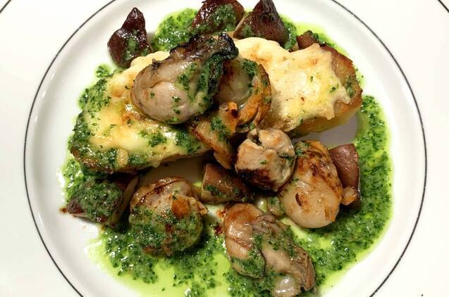 真鯛のポワレポテトのうろこ仕立て・アルベールソース