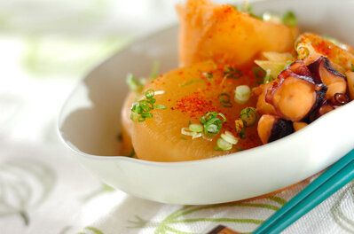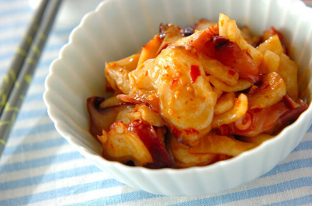 ピリ辛風味が特徴のアレンジレシピ、タコと大根のピリ辛和えです。豆板醤が入ったタレで味つけをしており、ご飯との相性が抜群の一品。大根は水気をしっかりと切ってくださいね。