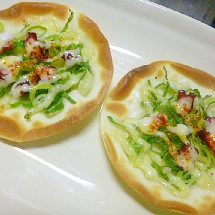 簡単♪おつまみ♪餃子の皮で♪ネギとタコのマヨ焼き
