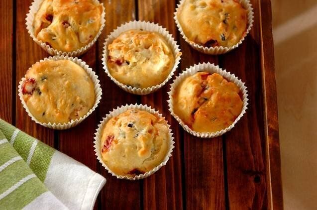 ブラックオリーブとタコにパルメザンチーズのコクをプラスした、タコとオリーブのマフィンです。ワインとの相性もバツグンですよ。生地のかたさは豆乳の量で調整してくださいね。
