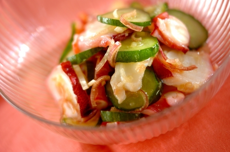 「タコとキュウリの梅肉和え」は、タコをさっぱりと食べるレシピ。梅干しと酒やみりん、しょうゆなどを合わせてつくる梅肉ダレを、ゆでダコとキュウリに和えてつくります。食欲がなくなる夏場にもおすすめのメニューです。