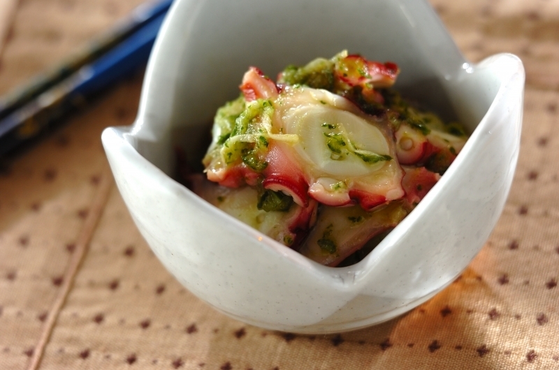 タコの和風カルパッチョのレシピです。ゆでタコ・レモン・にんにくの3つだけでつくれるシンプルな一品。お好みで大葉や三つ葉の軸を加えて、香りや風味をプラスするのもおすすめです。