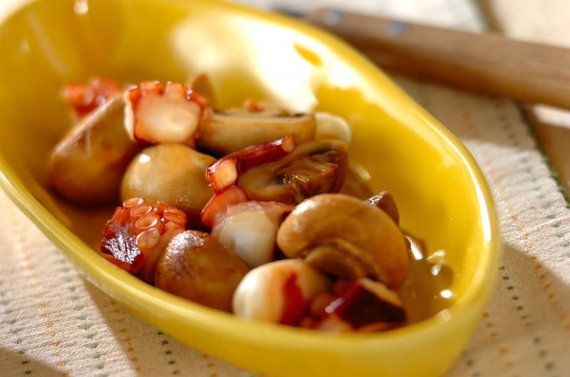 タコとマッシュルームをバター醤油に味付けした一品です。タコとマッシュルームの旨味がプラスされるので、シンプルな味つけでも旨味が感じられます。