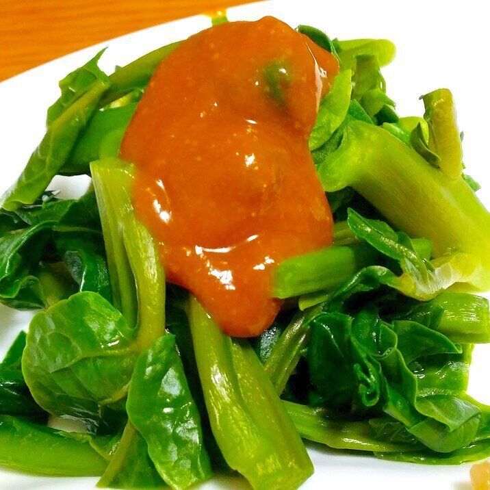 生のままで楽々、つるむらさきの明太子マヨ和え