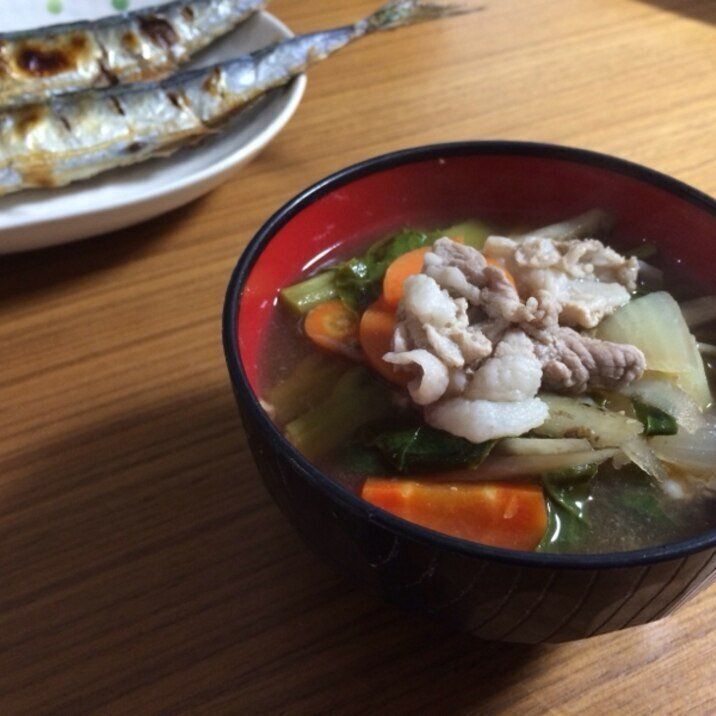 ツルムラサキ入り豚汁