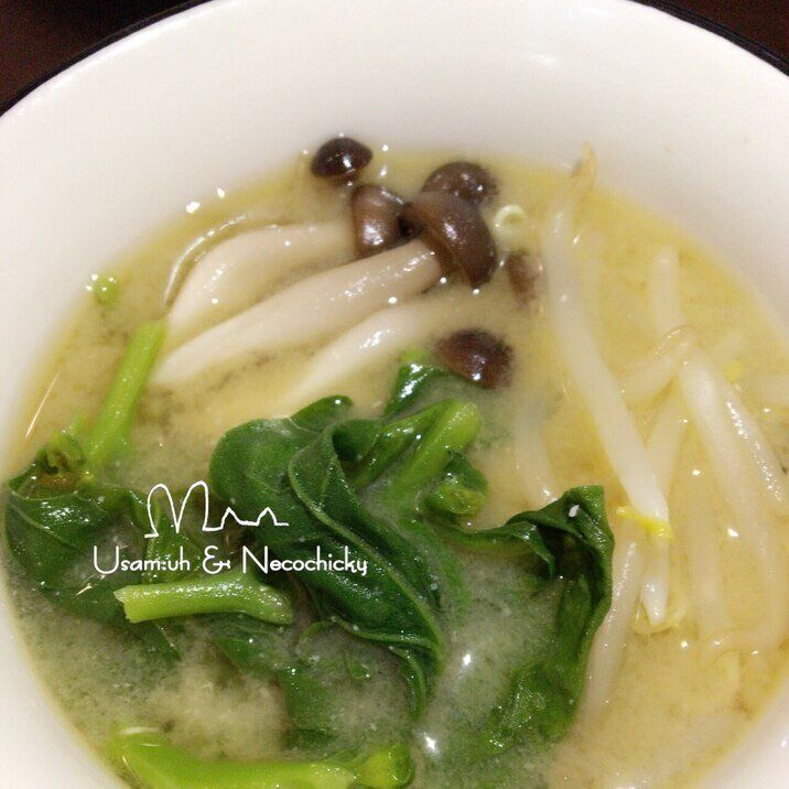 ツルムラサキ&もやし&しめじの味噌汁