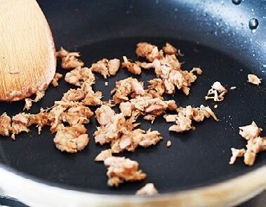 ツナをしっかり炒めると、魚臭さが抑えられて、うまみがアップ!野菜は、まず玉ねぎを先に入れてサッと炒め、甘みを出してからキャベツを加えるとベター。