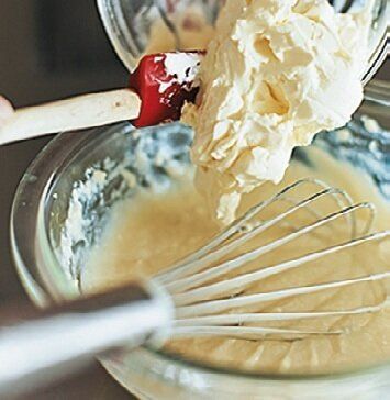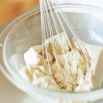 クリームチーズは、柔らかく練ってから加えるとなじみがいい。