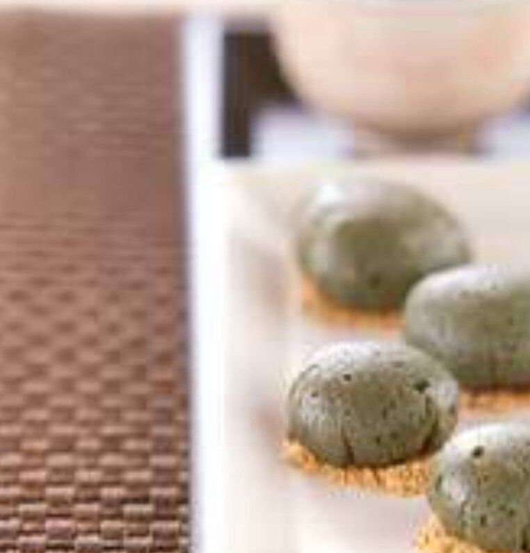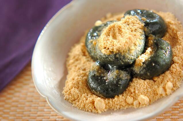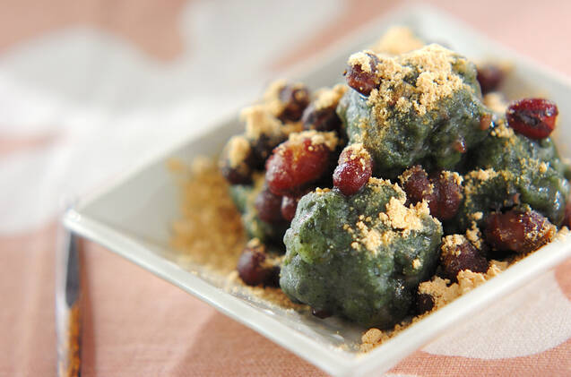 ヨモギ白玉きな粉がけ
