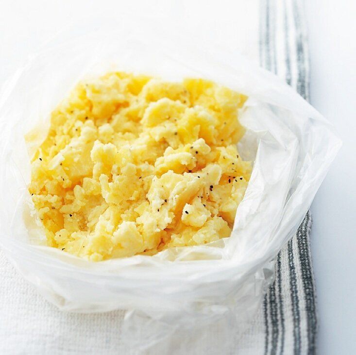 ポリ袋に、卵1個、砂糖大さじ2 、牛乳100mlを入れてもみ、4つに切った食パン1枚分を10分浸して焼けばフレンチトーストに。両面一気に浸せるから、バットなどで浸す半分の時間で超味しみ&お店顔負けの味に。