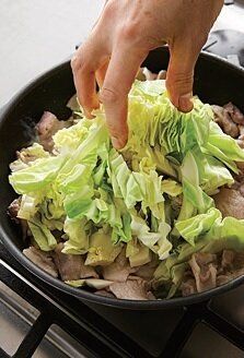 フライパンにサラダ油を中火で熱し、豚肉をさっと炒める。火を強めてキャベツを加えて手早く炒め、油がなじんだら、にらを加えて炒め合わせる。
