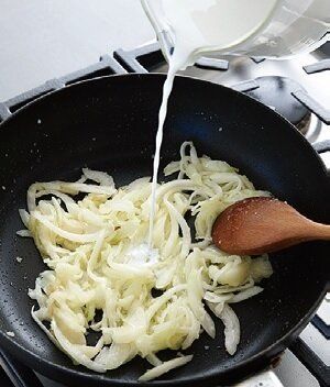 薄力粉をまぶした玉ねぎをしんなり炒め、牛乳を少しずつ加えて煮つめればホワイトソースに。