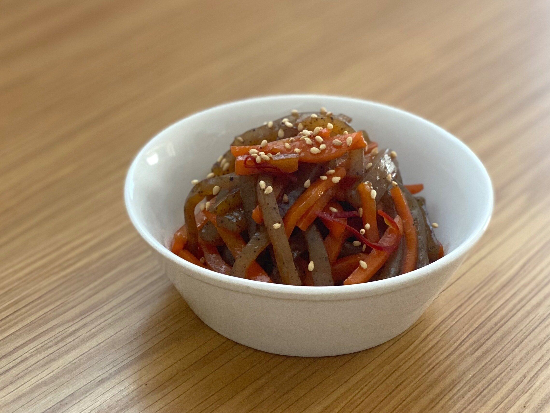 濃いめの甘辛味でごはんが進む!「にんじんと蒟蒻のきんぴら」