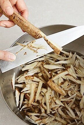 牛肉は大きければ食べやすく切る。ごぼうは皮をこそげてささがきに、れんこんは皮をむいて厚さ2~3mmの半月切りにする。どちらもさっと水にさらして、水けをよくきる。[A]は混ぜ合わせる。