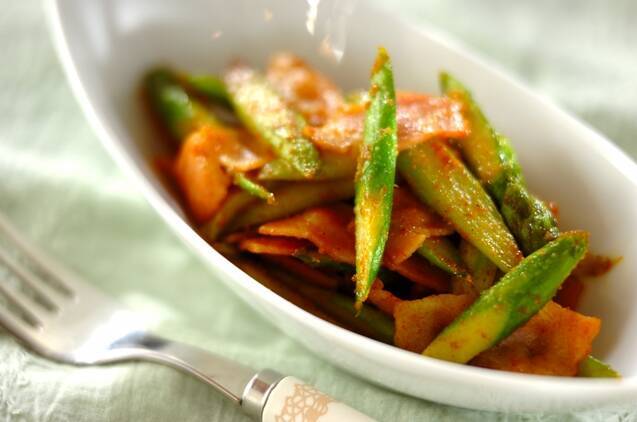 グリーンアスパラとベーコンのカレーソテー