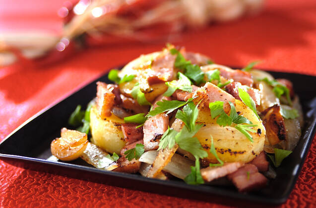 相性ばっちりのコンビ、ベーコンとポテトを味わえるメニュー。厚切りのベーコンを使用します。味つけによってアレンジも楽しそうな一品。使用するおいもを変えて楽しむのもおすすめですよ。