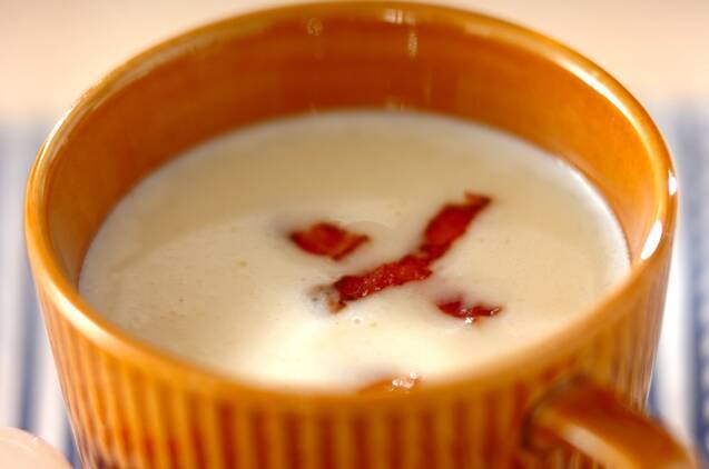 じゃがいもの冷製スープ、ビシソワーズのレシピです。生クリームを使わずに、牛乳であっさり上品に仕上げています。カリカリのベーコンをトッピングして、アクセントを加えましょう。