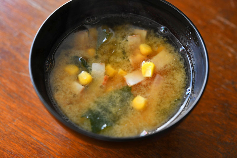 コーンとベーコンの即席みそ汁