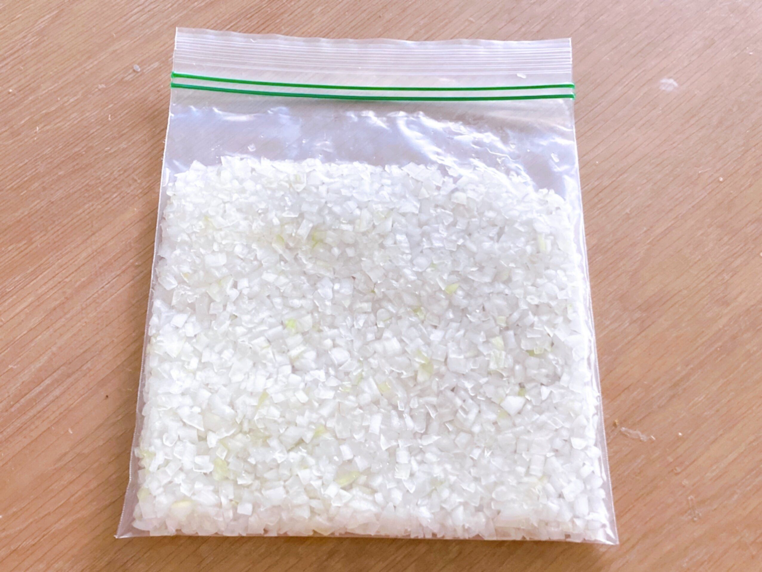 ハンバーグなどひき肉に混ぜ込む時もそのまま入れて一緒にこねれば短時間で調理が出来ます。「ちょっとだけ使いたい!」という時にも冷凍庫にあればすぐに使えるので本当に便利です。