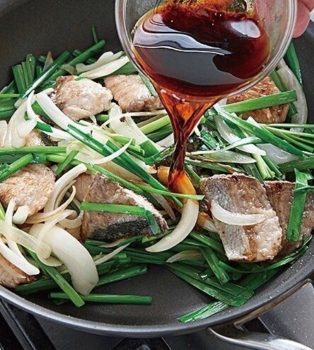 魚のたんぱく質で免疫力UP。代謝をよくする硫化アリルを含むにらと玉ねぎと炒め合わせて、こくうまだれで味つけ。