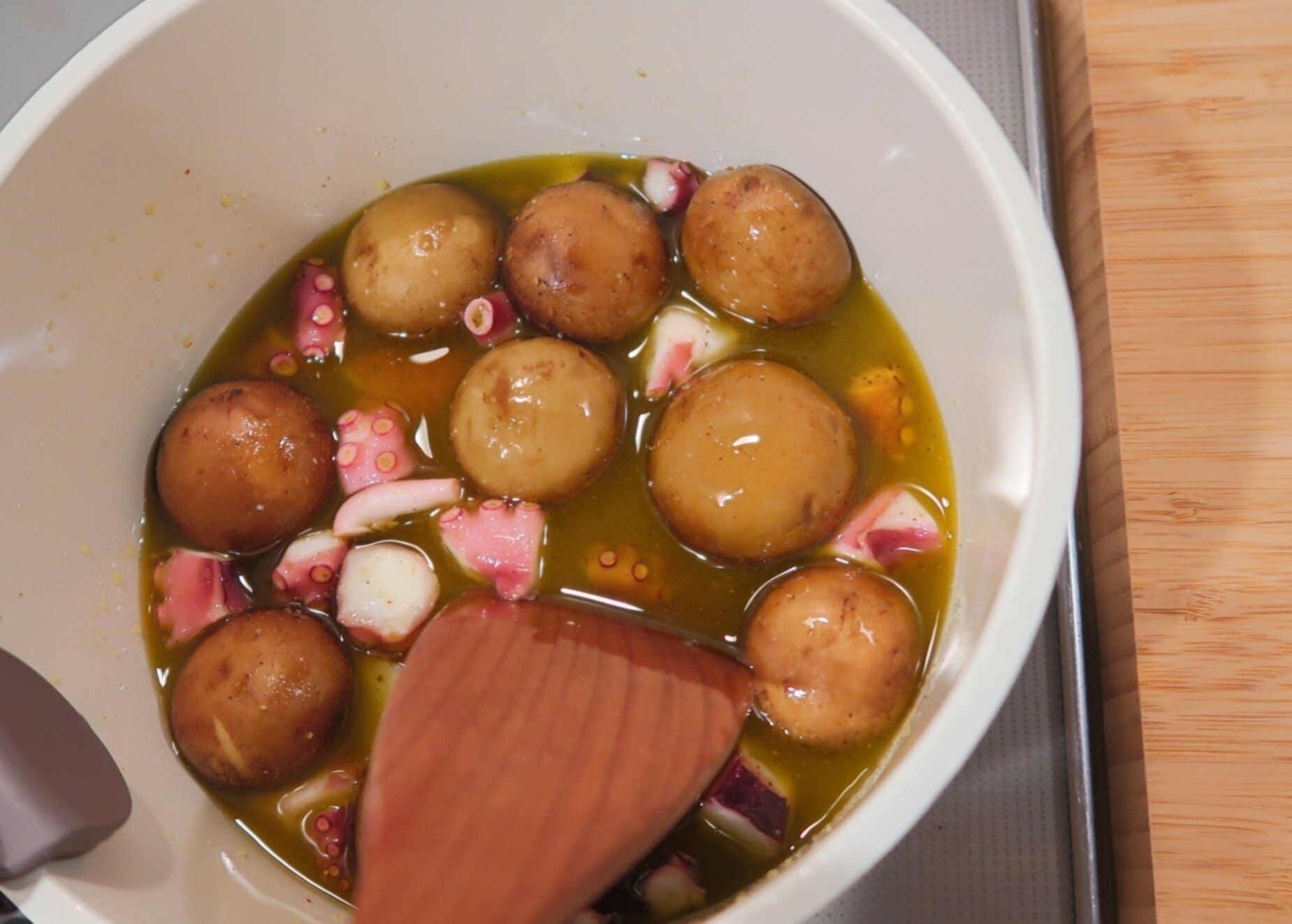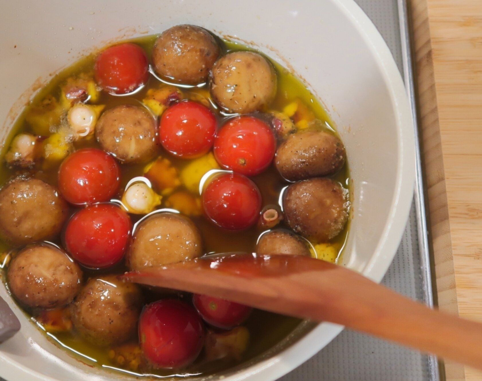 カルディの「アヒージョシーズニング」でつくる!【タコとマッシュルームの本格アヒージョ】のつくり方